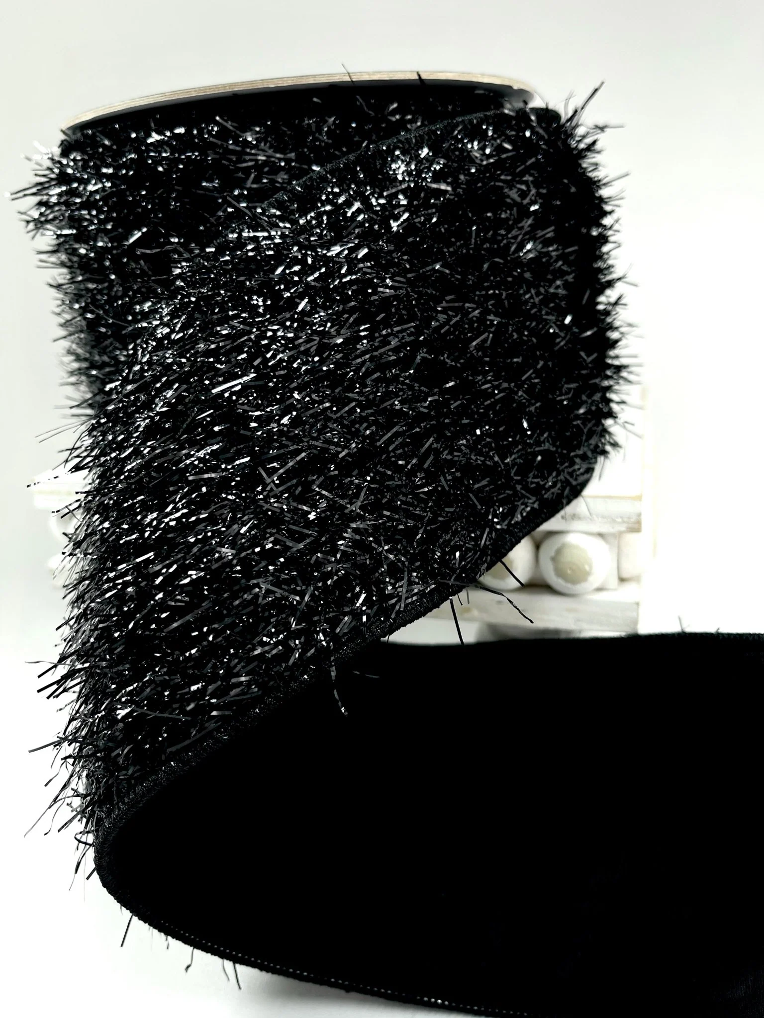 Black tinsel wired ribbon 4”